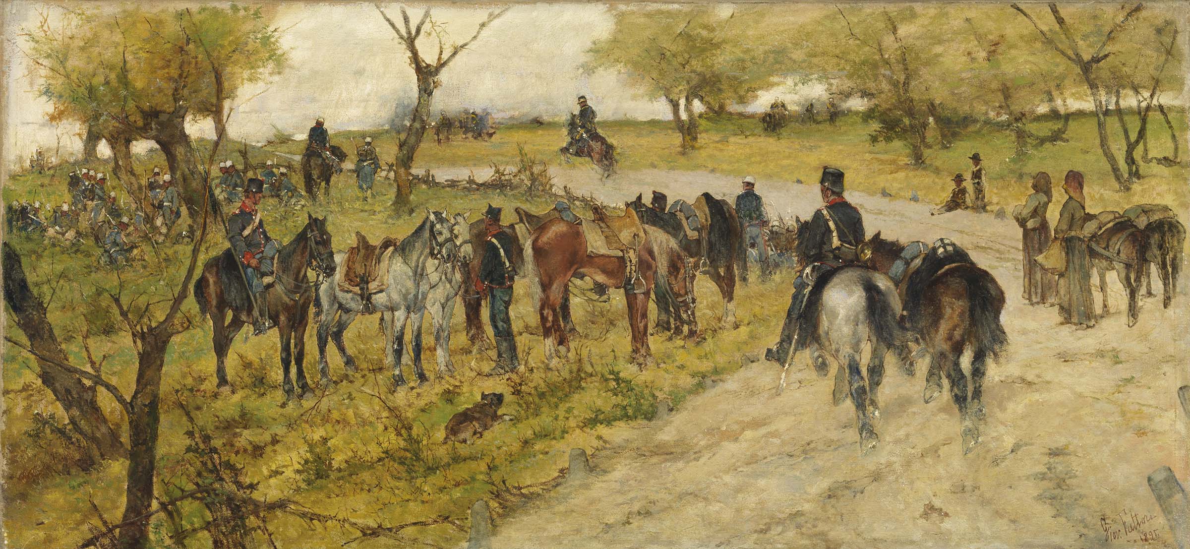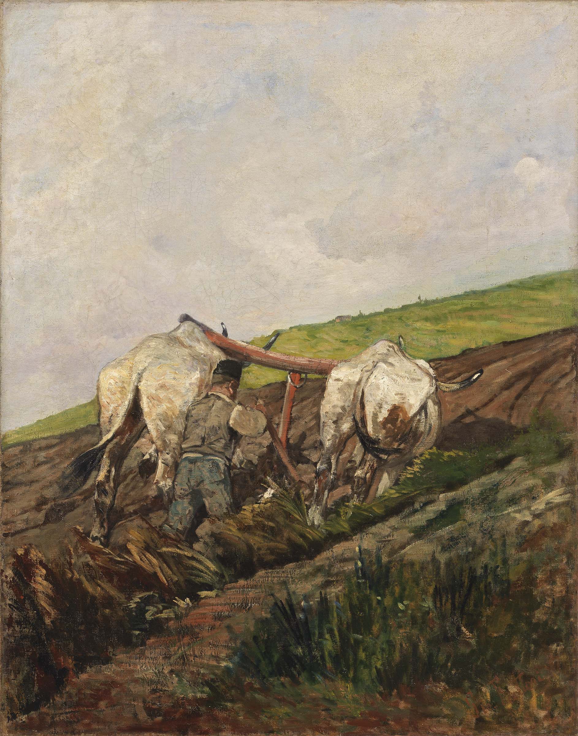 Non è però questo ritratto il top lot del catalogo. Bensì per Giovanni Fattori, presente con due dipinti della maturità. Si tratta di due opere che in maniera diversa raffigurano un tema universale, la sofferenza umana: quella quotidiana per la sopravvivenza dei contadini e quella dei soldati. “Bivacco di militari e cavalli (Alle manovre)” del 1895 (Olio su tela, cm. 45×97) è stimato € 200-300 mila. Qui la battaglia non è celebrata, il dipinto immortala un momento di calma e tranquillità. L’altro lavoro del macchiaiolo è “L’aratura” del 1882 ca. La fatica dei contadini e dei buoi è protagonista e raffigurata in maniera monumentale (l’olio è molto grande, misura cm. 102,2×80). Gli esperti di Farsetti parlano di una liturgia della “battaglia quotidiana”, della quale questa tela è un esempio importante che rappresenta un punto di svolta nel percorso di rinnovamento del realismo fattoriano. Stima € 250 – 350 mila euro.