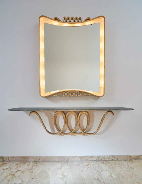 struttura in legno intagliato e dorato, piano in marmo cm 50x160x36 Eseguito nel 1946 ⊕ € 5.000-7.000