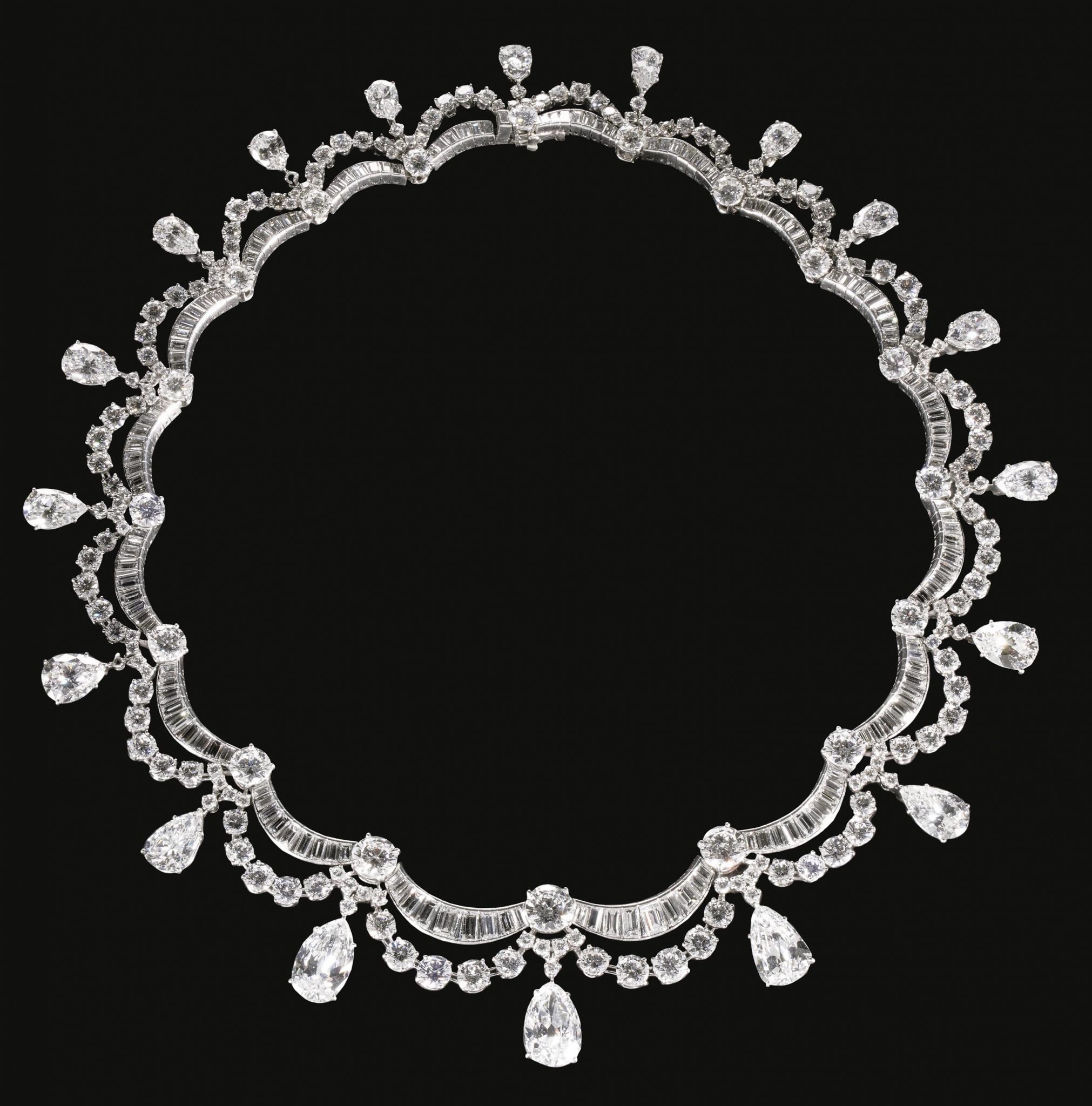 Immaginando di passare nelle sale del Palazzo che espongono senza soluzione di continuità tutti i lotti delle sei vendite che qui saranno esitate, troviamo un COLLIER trasformabile in diadema in platino e diamanti con taglio a brillante, a baguette e a goccia che sarà in vendita con una stima di 200.000/300.000 euro, sotto i riflettori anche una COLLANA in oro bianco e diamanti con al centro un diamante pendente tagliato a goccia di quasi sei carati che ha una stima di 110.000/180.000 euro. Non meno interessante lo smeraldo ottagonale di circa 22 ct. al centro di un ANELLO in platico e diamanti valutato 30.000/40.000 euro, preziosa e unica la bella e grande perla naturale con sfumature grigio rosate montata, tra due coppie di brillanti, al centro di un ANELLO in oro bianco valutato 25.000/35.000 euro. Sotto teche anche gli orologi, tra questi un ROLEX DAYTONA del 1971 con cassa oyster in acciaio che è valutato 35.000/45.000 euro.