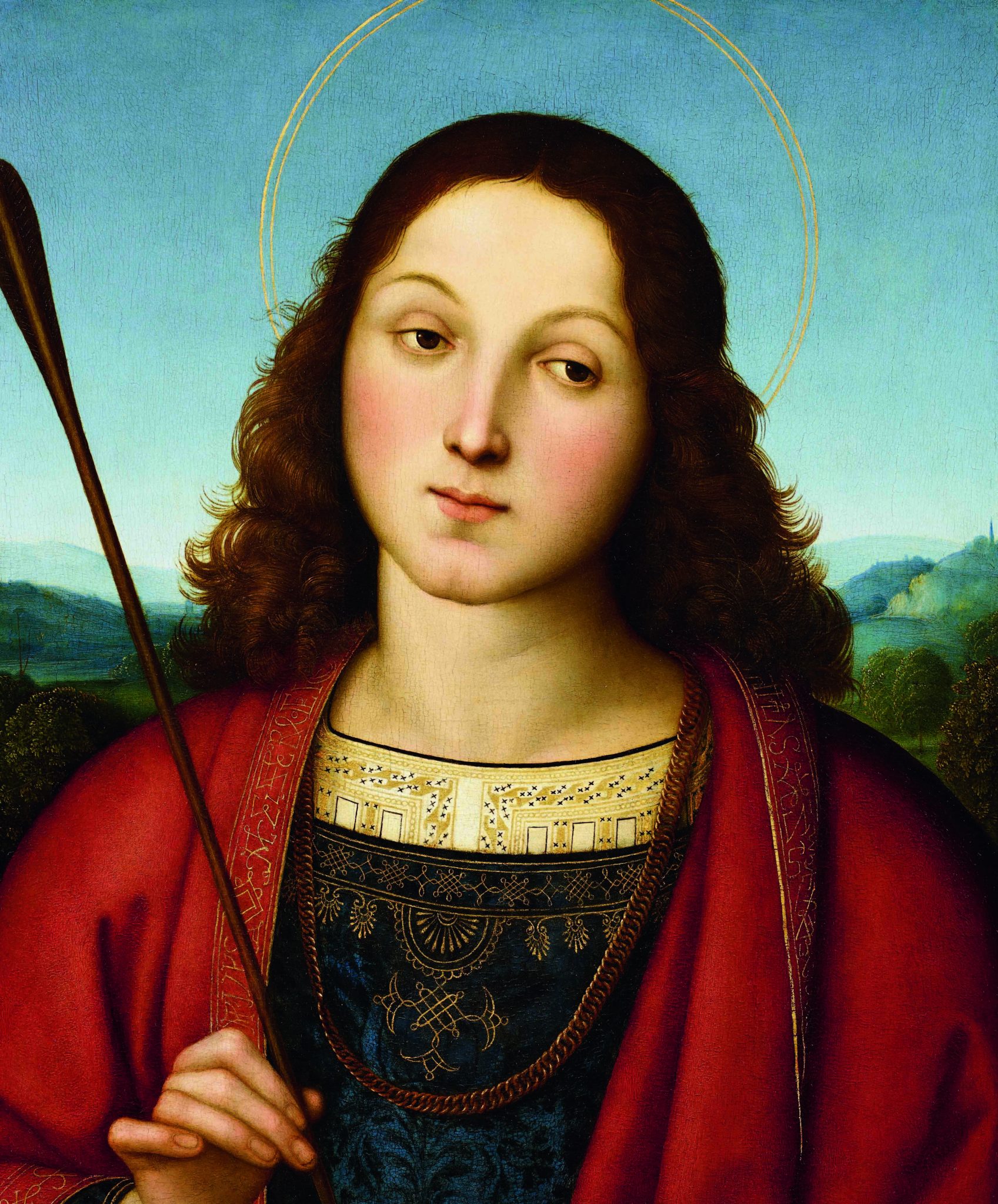Si fa appena in tempo a salire la prima rampa di scale, che dell’Urbinate si sente, appunto, già l’onda di propagazione. È negli artisti contemporanei che l’hanno omaggiato, citato, manipolato: i d’après di Vezzoli e Ontani, gli impacchettamenti di Christo, la raffinata installazione di Paolini, l’avvolgente rosa e oro di Spalletti, le eteree statue viventi di Vanessa Beecroft… Nomi d’oggi che riveriscono un colosso della pittura, gigante, a quanto pare, fin da piccolo: il percorso parte, molto sinteticamente, dal retroterra costituito da suo padre Giovanni Santi e da Perugino, Pintoricchio, Signorelli. È nelle fertili Marche dei Montefeltro – qui rappresentate da Federico, immortalato da Pedro Berruguete, e da sua nuora Elisabetta Gonzaga, effigiata da Raffaello col sontuoso corpetto ad intarsi geometrici – che si forma e cresce un genio eccezionalmente precoce, il quale già a diciassette anni poteva fregiarsi dell’appellativo di “magister” e intorno ai venti firmava il San Sebastiano della Carrara.