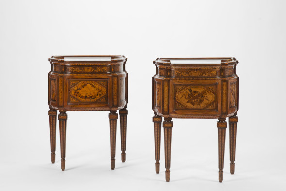 Tra gli arredi, spicca una coppia di piccoli mobili del grande ebanista milanese Giuseppe Maggiolini (Piva & C., Milano); un cassettone a ribalta con alzata, lastronato in noce, radica di noce, radica di tuja e intarsi in legni diversi, prodotto in Lombardia alla metà del XVIII secolo (Giglio Antichità, Milano); una ribalta a urna, in radica di noce, realizzata in Lombardia nel XVIII secolo (Ars Antiqua, Milano).