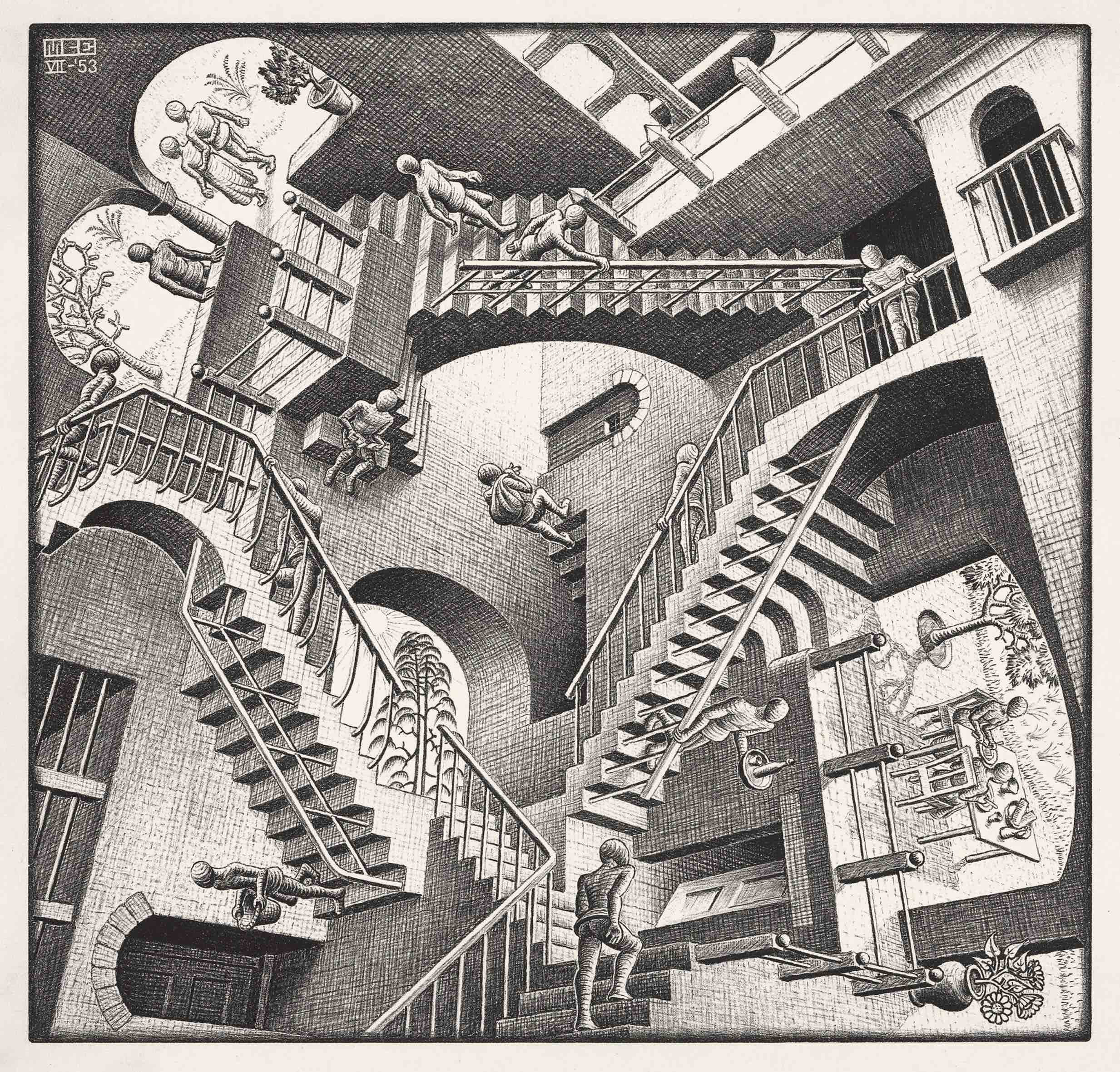 Maurits Cornelis Escher Relatividad 1953 Litografía, 27,7×29,2 cm The Escher Foundation Collection All M.C. Escher works © 2017 The M.C. Escher Company. All rights reserved www.mcescher.com