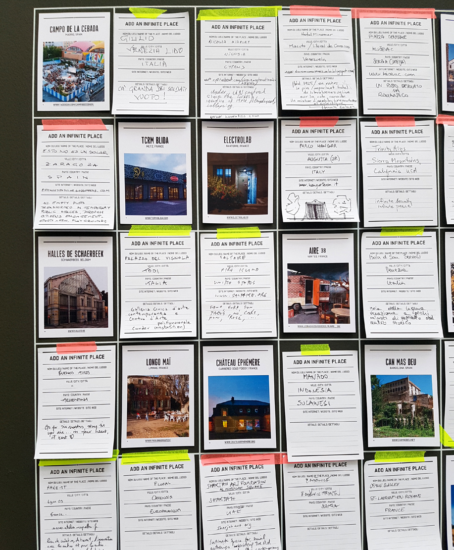 L’allestimento, che ricicla materiali usati per Studio Venezia della scorsa Biennale Arte 2017, restituisce la globalità d un territorio, evidenziando tutte quelle azioni svolte dalla società civile e dalla collettività che riconducono alle possibili aperture sperimentali dell’architettura. Un racconto di dieci “luoghi terzi” lungo il territorio francese, su cui sono intervenute occupazioni temporanee, infrastrutture pubbliche, habitat partecipativi, spazi lavorativi o culturali, e in cui si suscita la domanda se sia necessario soltanto costruire degli edifici o creare invece dei luoghi in sè.