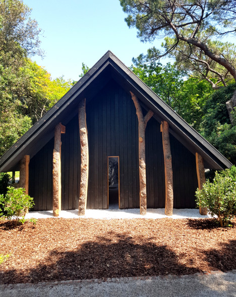 Uno spazio aperto in cui l’architettura può fungere da bussola, in un luogo, come un bosco, in cui perdere l’orientamento. Per la prima volta la Santa Sede entra nello spazio della Biennale Architettura incastonando dieci cappelle in un bosco quasi dimenticato di Venezia sull’Isola di San Giorgio. Nel culto cristiano la cappella rappresenta un vero e proprio tempio, sia pure in forma minore rispetto alle cattedrali, alle basiliche e alle chiese. Il modello, tema guida del progetto, è la Cappella nel bosco del 1916-1918 di Erik Gunnar Asplund nel Cimitero nel bosco di Stoccolma. L’unica indicazione che i dieci architetti coinvolti hanno ricevuto è stata la dimensione dell’area a disposizione di ciascuno: 7 metri per 10.
