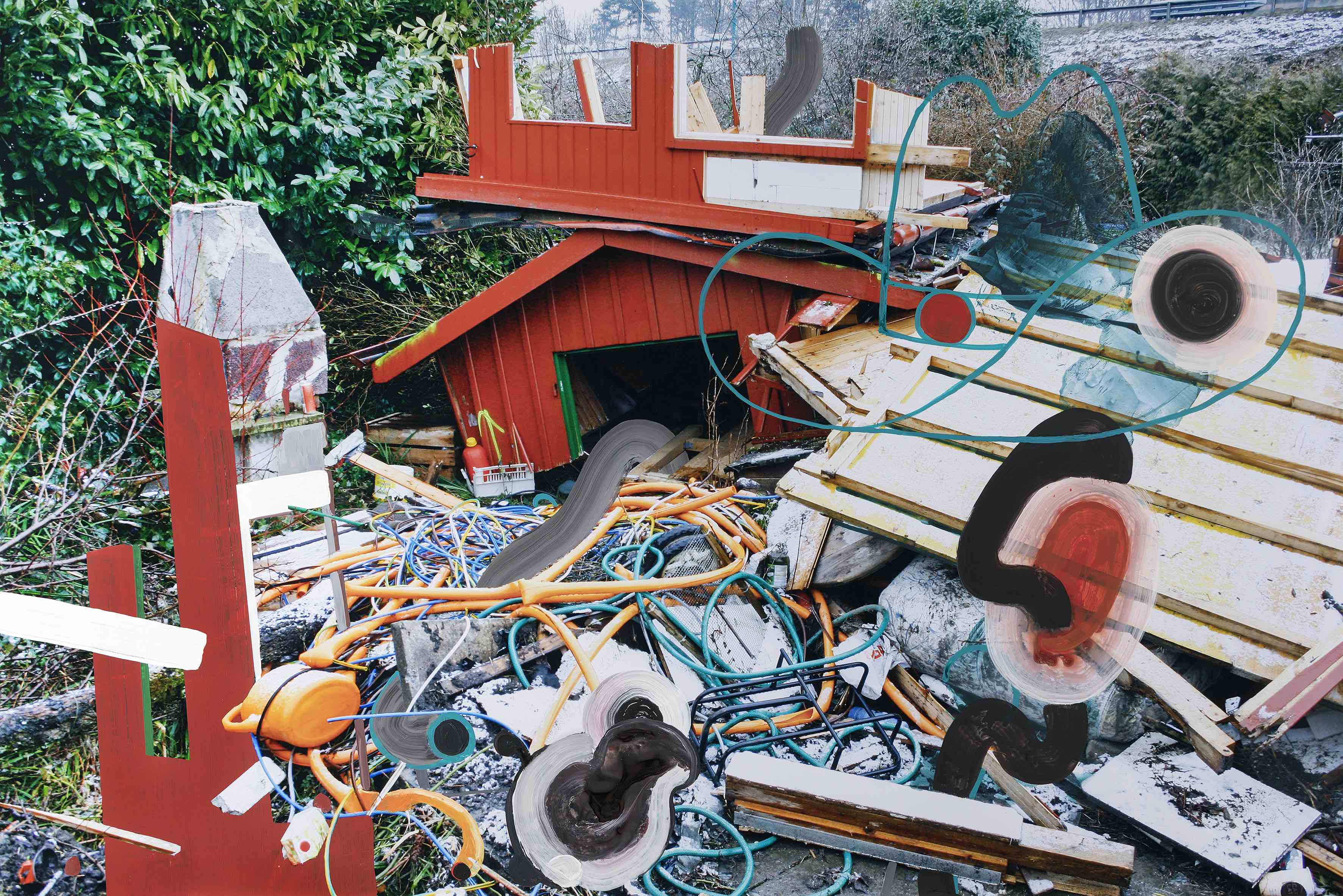 L’idea di utilizzare vari tipi di materiali riciclati è un aspetto centrale sia nei dipinti che nelle installazioni/sculture. Abbiamo raccolto i materiali da diversi magazzini di Reggio Emilia e con questi abbiamo creato le nostre sculture. Abbiamo scoperto un giardino trasandato nei pressi del nostro studio di Zurigo e abbiamo pensato di continuare una specie di lavoro di giardinaggio attraverso scatti del giardino stesso.