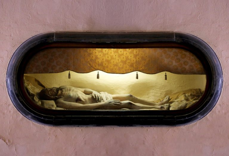 Il percorso espositivo si apre con il trittico Les Mégères, raffigurante tre busti di epoca antica. L’artista, utilizzando l’inquadratura frontale, crea una nuova visione statutaria che mette in risalto il temperamento delle tre donne raffigurate facendo emergere, volutamente, le caratteristiche proprie della vita dei personaggi. Theatre è uno scatto fotografico che ci invita a riflettere sulla strumentalizzazione del corpo di Cristo morto, la figura immortalata, all’interno di una teca, è riprodotta in una postura di totale abbandono, attorniata da drappeggi e tendaggi, il tutto costruito per alludere ad una teatralità che provocano nello spettatore sentimenti di compassione, mentre l’intento dell’artista, tramite il suo scatto, è proporre una visione consapevole e neutrale, dando spazio a una totale e libera interpretazione. In Cerise de printemps, il corpo femminile post-parto è protagonista, nessuna concessione a sensualità ed erotismo, anzi vengono messi a fuoco smagliature e sovrappeso, sottolineando tutto il disagio di una vita sofferente.