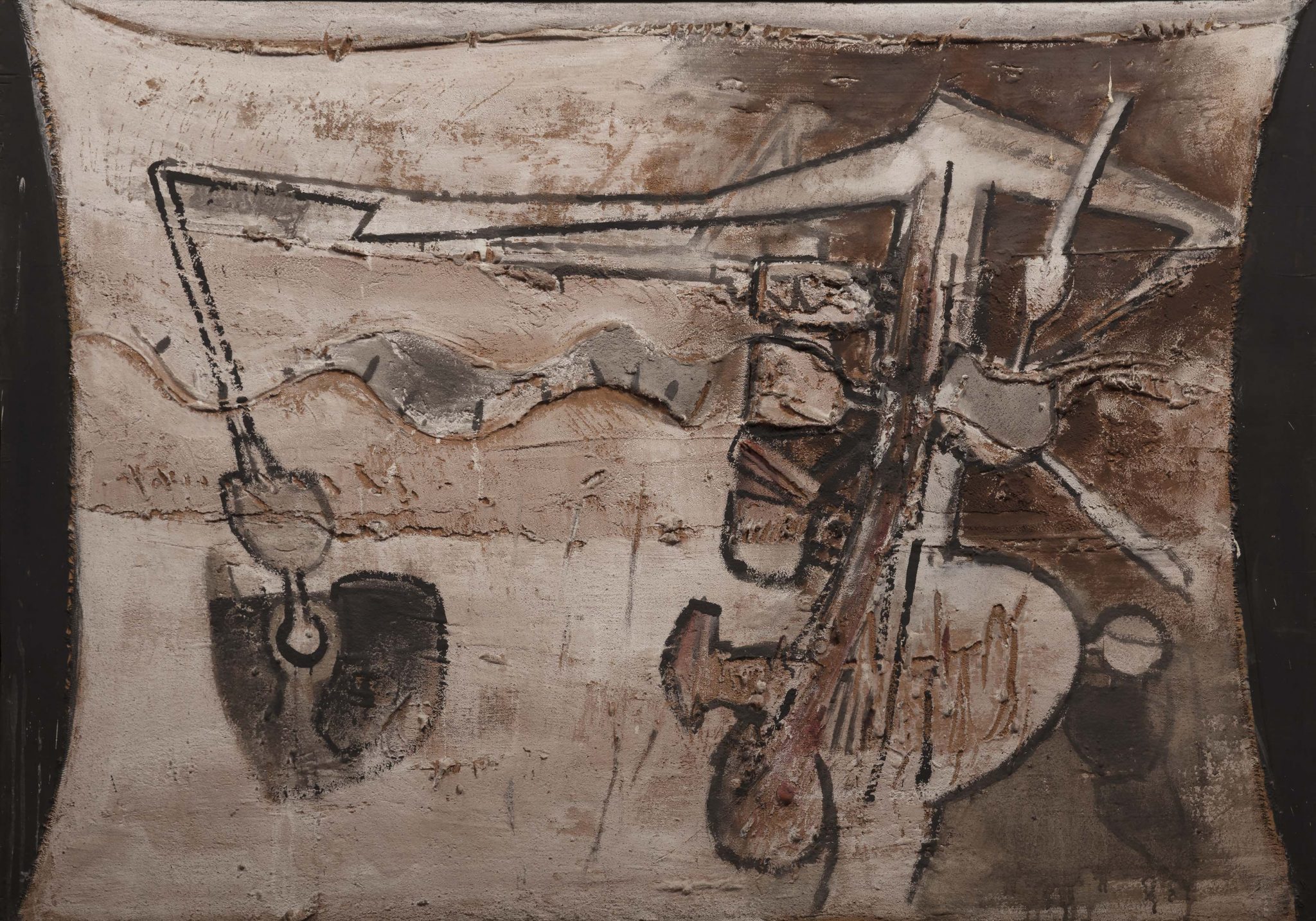Un interessante ritrovamento è costituito dall’opera del ‘63 di Sebastian Matta, Tu beninteso cascellato, finora gelosamente custodita in un’importante collezione emiliana. È un grande lavoro a terre colorate su tela riportato su tavola che il proprietario acquistò direttamente dall’artista. La sua stima è di 40.000/60.000 euro (lotto 57).