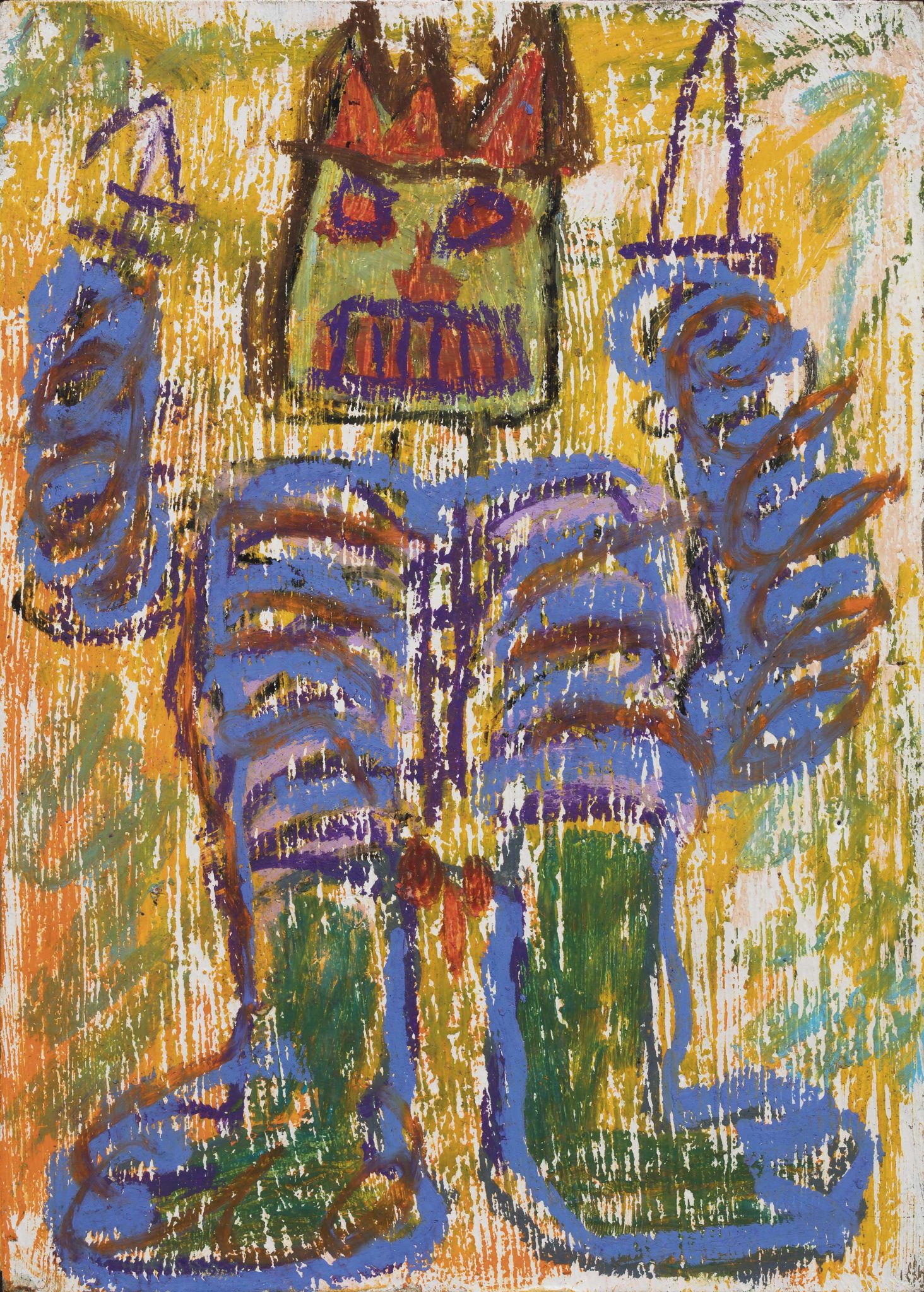 Senza titolo raffigura un personaggio caricaturale che indossa proprio questa corona a tre punte, capace di innescare una sfida che ha visto subito le offerte salire sull’ordine dei 40.000 euro. L’opera è stata poi battuta a 93.750 euro. I guantoni Everlast (62.500 euro) vedono la celebre combinazione di immagini e testo scritto, eco della relazione personale e professionale che ha legato Basquiat ad Andy Warhol.