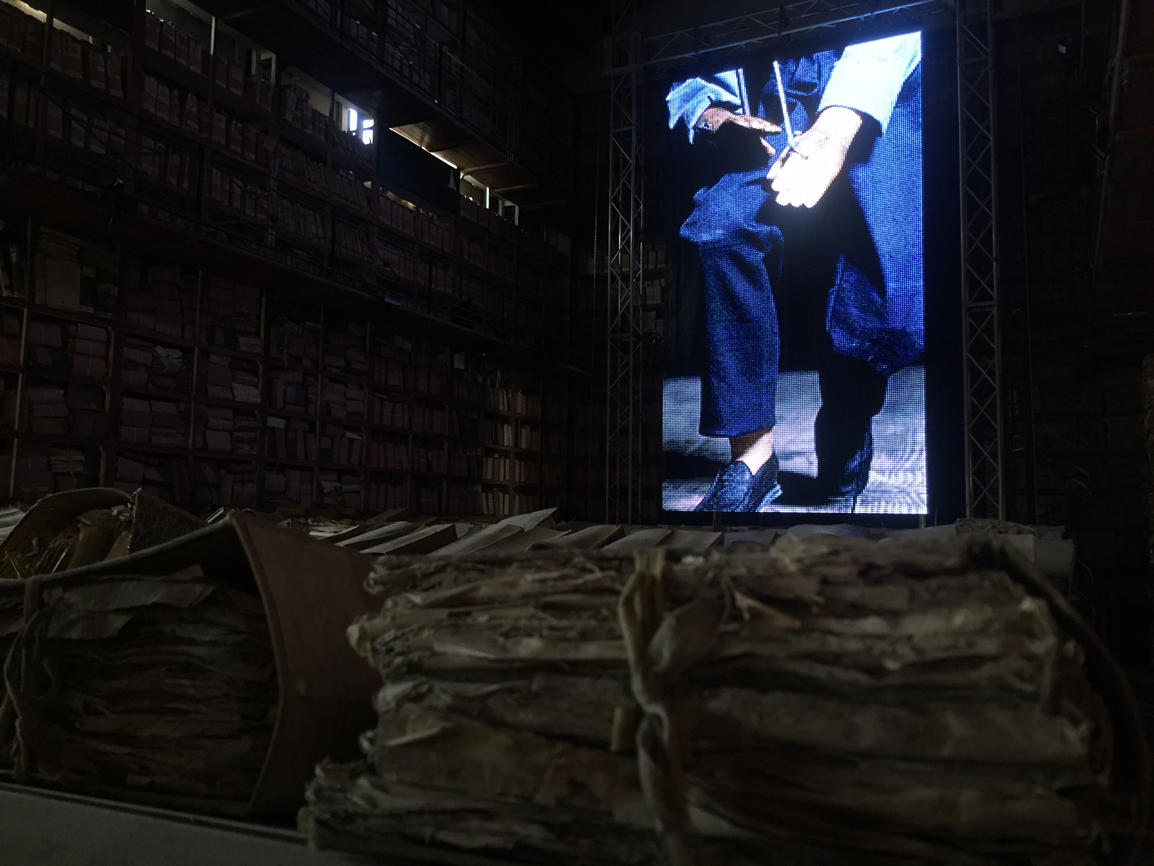 Loro sono ben consapevoli della “sfida” di mettere una loro opera in un luogo carico di pregnanza visiva e ambientale come può essere un archivio pieno di documenti di secoli di storia. Eppure i MASBEDO – il duo artistico composto da Nicolò Massazza (1973) e Iacopo Bedogni (1970) – quella sfida la vincono alla grande con Protocol no. 90/6, la video installazione site-specific concepita per la Sala delle Capriate all’interno dell’Archivio di Stato di Palermo.