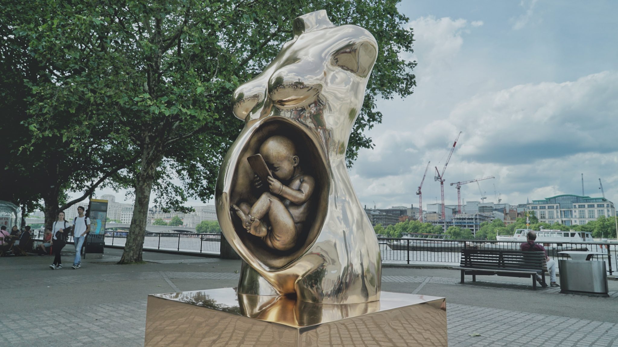 Una narrazione del rapporto tra l’uomo contemporaneo, la tecnologia e la digitalizzazione che oggi stanno cambiando radicalmente gli usi e i costumi ma che per le nuove generazioni saranno la normalità: questo è il fil rouge del lavoro di Federico Clapis. In questi giorni, per la prima volta, Connection, la sua scultura più nota, è volata a Londra nel South Bank al London’s Observation Point dove sta attirando l’attenzione di migliaia di persone. La grande scultura di bronzo (130x130x270) racconta il misterioso legame prenatale tra madre e figlio guardando all’arrivo della generazione futura, le cui sinapsi ora geneticamente connesse alla rete guarderanno con occhi nuovi a una realtà in perenne evoluzione.