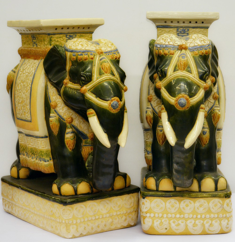 Coppia di sculture, sec. XX, in ceramica smaltata,