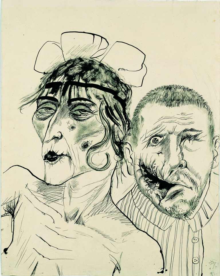Se Dada cercava di oltrepassare la violenza della guerra, in Germania la corrente artistica della Neue Sachlichkeit (Nuova Oggettività) immortalava impietosamente la triste quotidianità di una società degradata, che faceva largo uso di stupefacenti (come il famigerato Pervitin, un’anfetamina largamente commercializzata nelle farmacie), che vagava in città afflitte dalla disoccupazione e dalla fame, dove la prostituzione dilagava, segno di quel degrado morale che sempre segue le guerre e la povertà che si lasciano alle spalle.