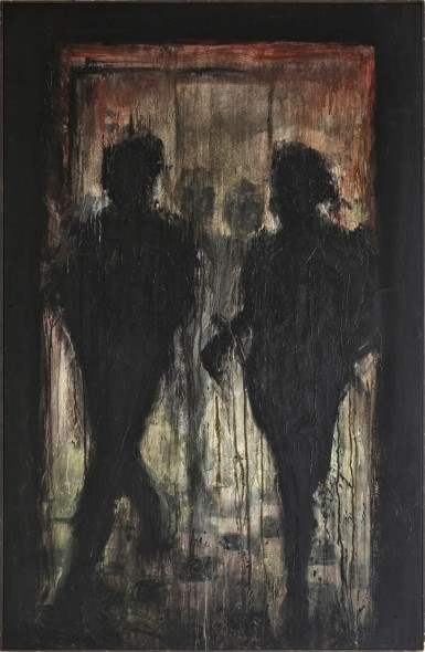 Sembra essere l’anno giusto per il mercato di “Mr Shadowman”: scomparso lo scorso ottobre, l“uomo ombra”, chiamato così per le sue silhouette nere schizzate sui muri, è stato uno dei protagonisti della street art newyorkese insieme a Haring e Basquiat. In questo lavoro si riconosce la sagoma di Popeye (il nostro braccio di ferro) raffigurato in piedi insieme ad altre due ombre mentre osservano una mappa che brucia. Lo scorso 4 giugno da Blindarte a Milano un suo acrilico del 1983, “Opening”, era stato battuto a oltre 20 volte la stima più bassa (7.000 euro) raggiungendo l’incredibile cifra di 150.000 euro (diritti esclusi – leggi qui l’articolo).