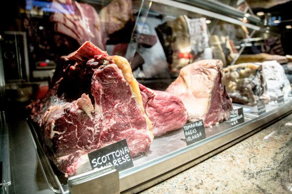 “I milanesi, mi creda. Arriva fin qui, e dopotutto siamo praticamente la periferia di Milano, chi desideri una fiorentina frollata 80 giormi in una copertura di grasso nobile di vitello, o il filetto “Elcano” di scottona con pepe di Sichuan e olio di sesamo nero. Ma anche con la tradizione italiana andiamo forte, perché non ci facciamo mancare il branzino e la ventresca di tonno, i tagliolini fatti in casa con asparagi al burro di Beppino Occelli, il riso pilaf allo zafferano con gamberi, calamari, cozze e vongole. Il punto di riferimento, oltre alle eccellenze in fatto di carne alla griglia, è la cucina nazionale; e se proprio dobbiamo esercitarci con qualcosa di nuovo, preferiamo l’innovazione radicale più che la rivisitazione dell’esistente.”