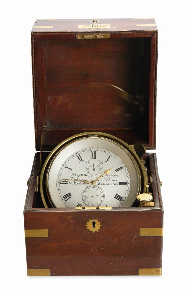 Di particolare attrattiva è inoltre il capitolo dedicato agli strumenti scientifici che include un ottante del 1786 (lotto 129, €1.000), un raro cronometro da marina Adams a otto giorni di carica (lotto 139, base € 1.000), oltre a bussole e sestanti.