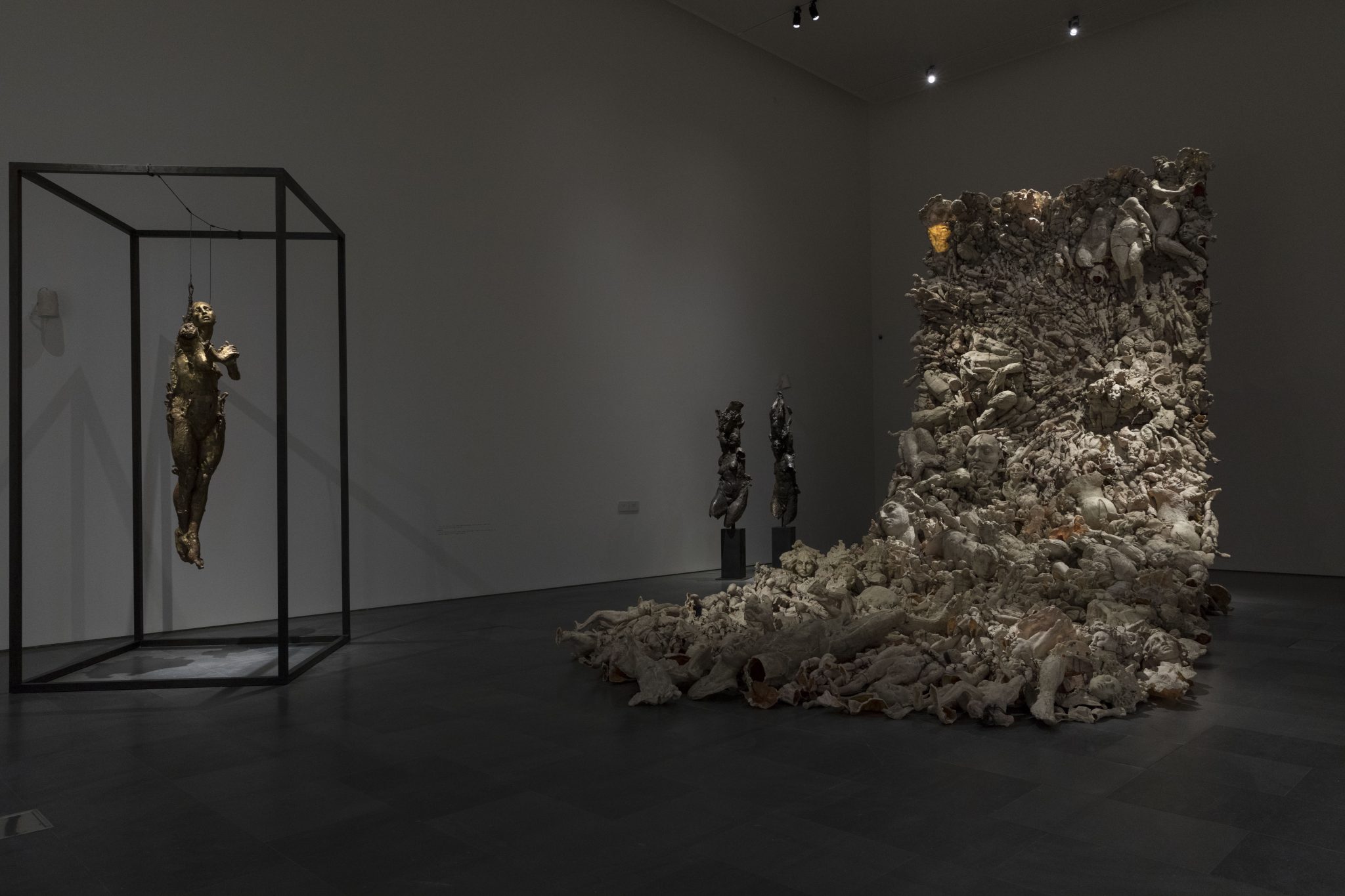 Sculture, opere pittoriche e grafiche che compongono Corpus sono state realizzate con tecniche e materiali diversi in un arco temporale ampio, 25 anni, a sottolineare tutti i passaggi salienti della ricerca dell’artista che pone al centro l’essere umano. Le opere – soprattutto per dimensioni e imponenza – sono caratterizzate da un forte impatto visivo ed emozionale, a cominciare dalla prima, la famosa En Blanco (In bianco), che torna in Italia dopo un trascorso illustre alla Biennale di Venezia del 2003.Ispirato probabilmente dai versi di Octavio Paz, messicano, premio Nobel per la letteratura nel 1990 che in Elfuego de cada dia(Il fuoco di tutti i giorni) scrive: “Brucia l’istante con un solo volto / i successivi volti della fiamma, / tutti i nomi sono un solo nome / tutti i volti sono un solo volto, / tutti i secoli sono un solo istante”, En Blanco è una monumentale installazione scultorea nella quale un fiume impetuoso, ma non infinito, ingrossato di centinaia di corpi umani frammentati, di arti e volti – i cui sospiri sembrano risuonare nello spazio sorprendendo lo spettatore con emozioni immediate – ci ricorda un altro fiume, irripetibile, quello di Eraclito, nel quale – secondo la Teoria del divenire–“non si può scendere due volte”.