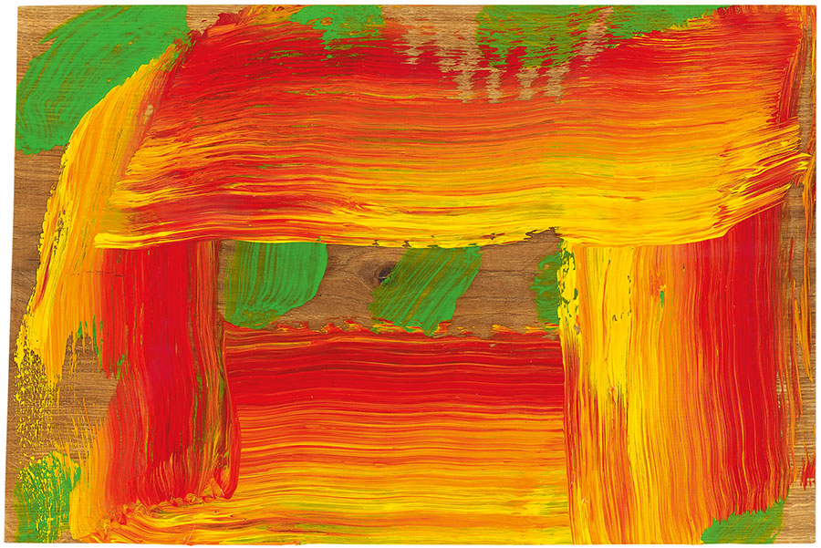 È Going for A Walk With Andrew (1995-98) il primo lavoro in cui la pennellata sfugge dallo spazio limitante del supporto invadendo la cornice, una libertà che da quel momento Hodgkin non smetterà più di concedersi. Ciò accade anche nell’opera in mostra Portrait of the Artist Listening to Music (2011-2016) in cui la cornice è resa protagonista, tanto quanto il supporto,di colori, emozioni e movimenti.Questo dipinto mostra l’attenzione dell’artista verso ciò che è intimo e profondo, come il pensiero e il sentimento che affiora in un privato momento di solitudine. Le ultime opere sono caratterizzate da una maggior organicità e il segno pittorico viene impresso con più animo, “Molte persone… sono spaventate dalle immagini che possiedono delle emozioni visibili in sé. Esse si sentono più calme di fronte ad immagini che sono pacate” (Howard Hodgkin). I sentimenti e le passioni sono comunicati anche attraverso i titoli delle sue opere, come Love Song (2015), in cui le sicure e decise pennellate di colore sembrano disporsi sulla base come foglie in balia del vento, leggere e dal movimento imprevedibile.