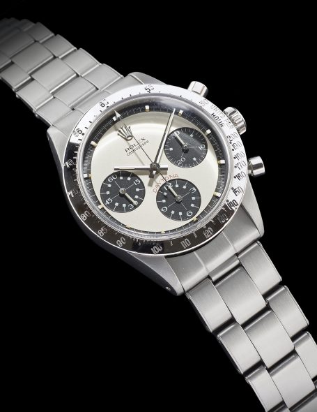 Tra gli orologi spicca un raro Rolex Daytona “Paul Newman”, ref. 6262, 1970 circa, offerto a con una stima di 150.000 – 200.000 euro (lotto 97), un Patek Philippe della fine degli anni ’40 (ref. 1579) quotato 24.000 – 28.000 euro (lotto 110), e due Rolex Datocopax (ref.4767) dello stesso periodo, in catalogo a 20.000 – 26.000 euro per il lotto 118, e a 30.000 – 35.000 euro per il 121.
