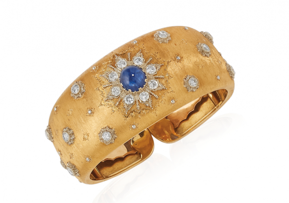 Tra i lotti più interessanti presenti nel catalogo dedicato ai gioielli ed agli orologi antichi (asta venerdì 13) si segnala un anello con smeraldi e diamanti stimato 60.000 – 70.000 euro (lotto 29), una demi parure in oro, smeraldi, zaffiri e diamanti, quotata tra i 30.000 ed i 35.000 euro (lotto 47), un bracciale di Buccellati in oro, zaffiri e diamanti (24.000 – 28.000 euro, lotto 137), ed infine una coppia di orecchini in oro e diamanti che partono da una valutazione di € 75.000 – 85.000 euro (lotto 138).