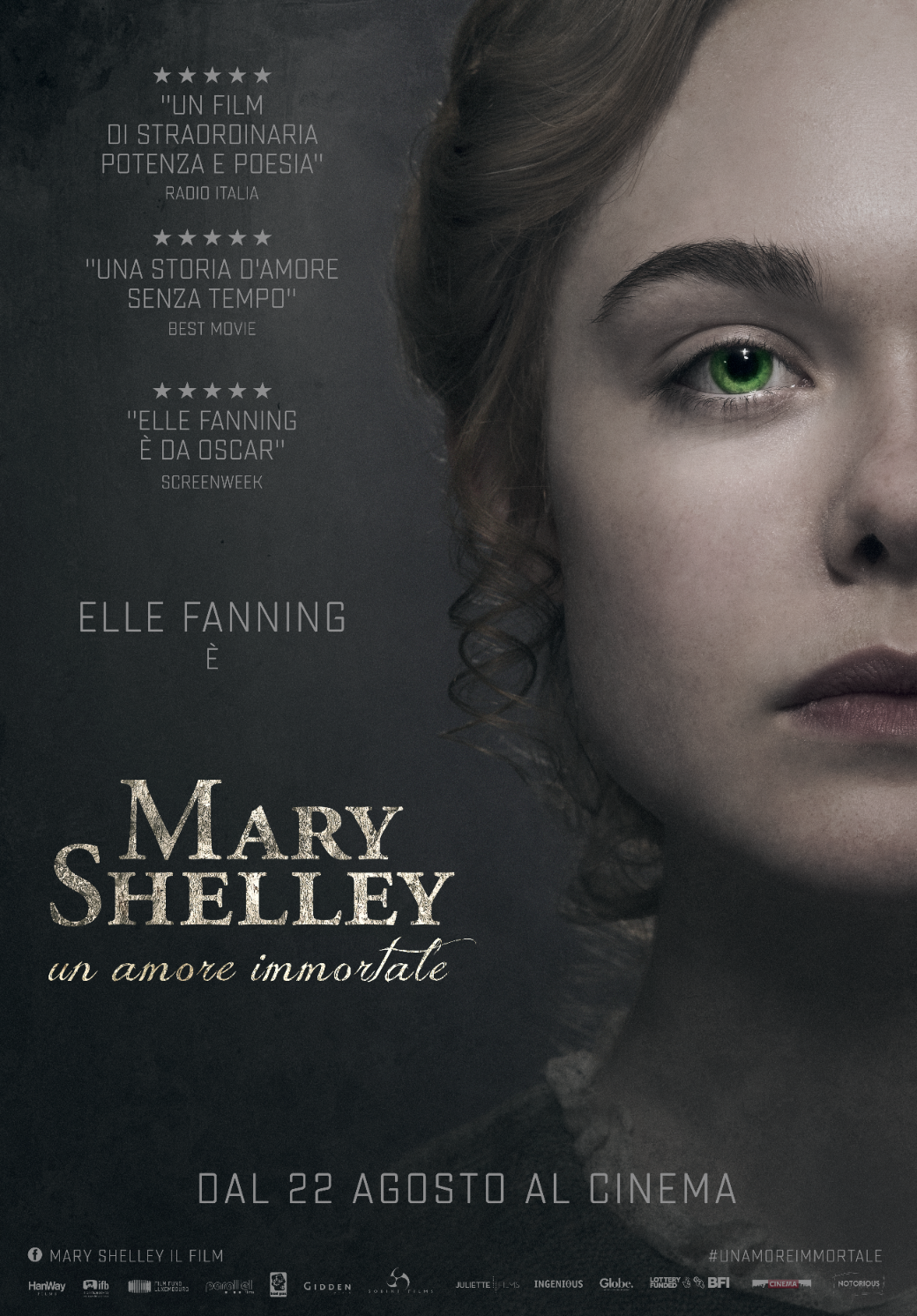 Elle Fanning, nei panni di Mary Shelley, si conferma un’attrice acuta, sensibile e incredibilmente talentuosa. Douglas Booth, nel ruolo Percy Shelly (già visto in Posh e Pride and Prejudice and Zombies), è molto bello.