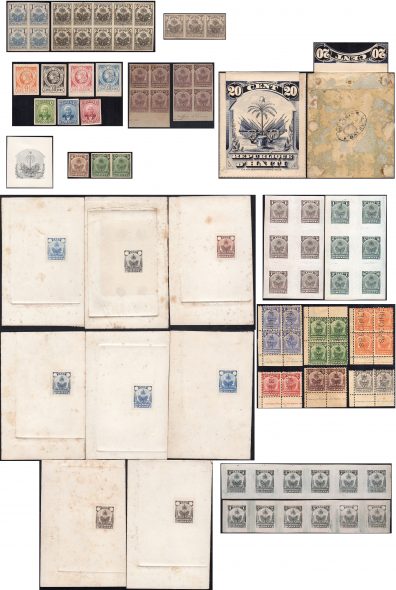 Il lotto 2170 proviene da Haiti e si tratta di un insieme unico di prove e saggi dei francobolli delle prime emissioni, risalenti al periodo fra il 1881 e il 1898, base d’asta € 3.000.