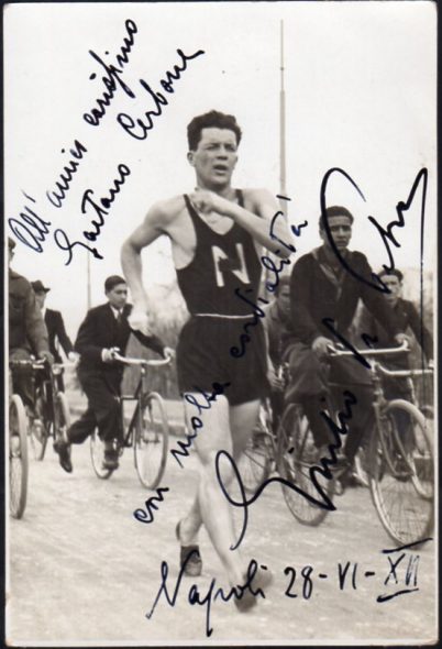 Il lotto 2330 chiude l’asta e propone due album di lettere e cartoline con autografi di alcuni dei protagonisti del secolo scorso in campo politico, teatrale, culturale e sportivo, come Gino Bartoli, Mondadori, Arnaldo Foa. Eccone alcune:
