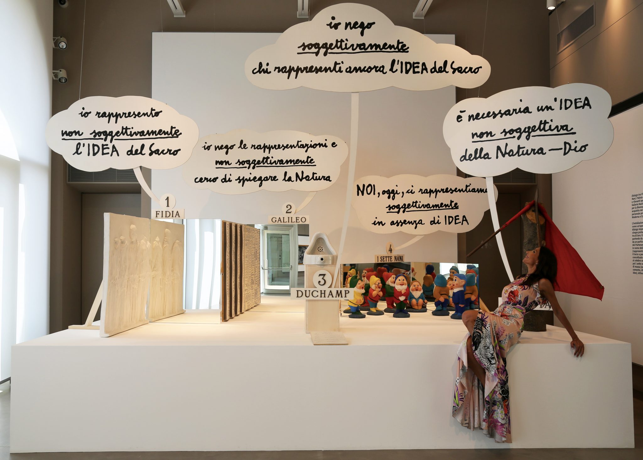 @EnzoMari, “Dialogo tra Fidia, Galileo, Duchamp, I 7 nani, L’Idiota” 1986