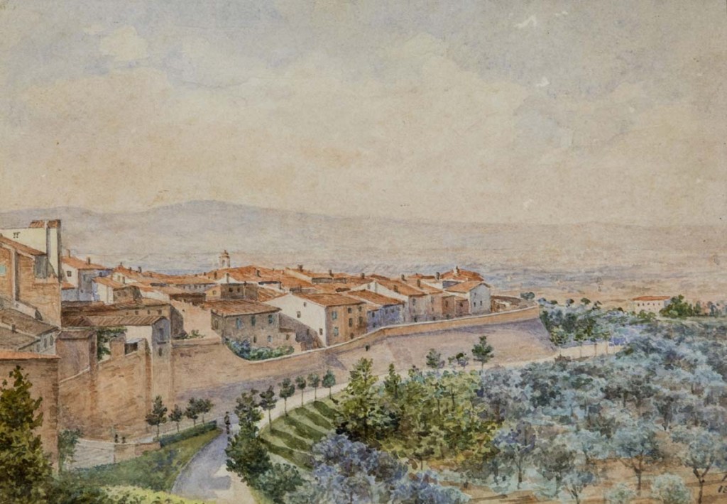 La mostra si apre con la sezione poliziana, ricca di opere suggestive, dal sapore agreste, che documentano la cittadina come appariva agli antichi viaggiatori; opere eseguite da artisti locali e nazionali, dalle incisioni agli acquerelli agli oli su tavola. Emergono nomi poco noti al grande pubblico, che però si rivelano acuti osservatori della realtà locale, e interessanti interpreti in chiave naturalista o post-macchiaiola; caratteristico il giovane villano ritratto da Ranieri Rossi (1815-1888), che nel vano di una finestra, con la Val di Chiana sullo sfondo, gioca con le bolle di sapone, così come ancora il Rossi seppe cogliere luminose vedute del borgo antico, in inverno come nella buona stagione, creando apprezzabili giochi di luce; di carattere più idilliaco, le vedute campestri al di fuori della cerchia muraria, dove la pennellata si stende con maggiore leggerezza, e l’ocra e il verde creano una gradevole triade con l’azzurro velato del cielo. La veduta della Fortezza, realizzata da Pietro Della Valle (della cui vita poco si conosce, a cominciare dalle date di nascita e morte), al cui centro campeggia il ponte a due arcate oggi scomparso, o forse semplicemente interrato. Accanto ai dipinti di sapore macchiaiolo di Italiano Zecchi (anch’egli poco noto), costituiscono una piacevole scoperta i pressoché inediti dipinti realizzati negli anni Trenta dal giurista Piero Calamandrei, la cui attività artistica si è sempre svolta nell’ombra; rivela invece una buona mano, dalla chiarezza sintattica e dalla pennellata pastosa.