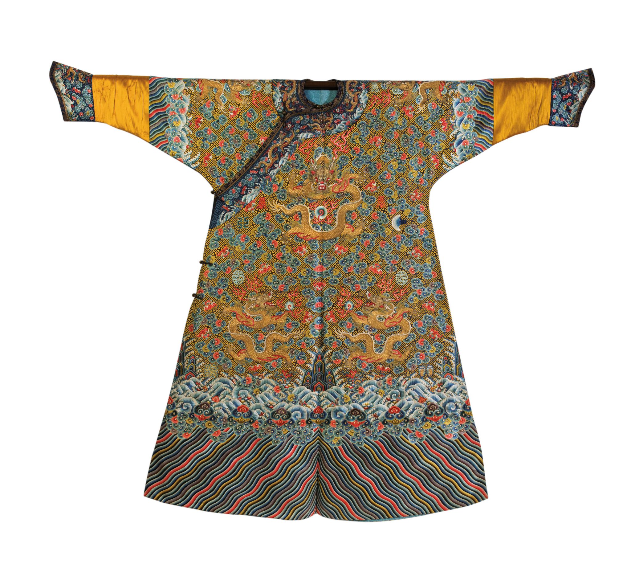 Abito imperiale in seta a fondo giallo con draghi ed i “dodici simboli”, Jifu, periodo Jiaqing (1796-1820).