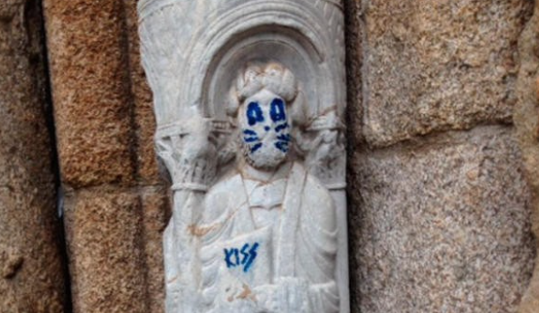 Cattedrale di Santiago de Compostela: un fan ha vandalizzato la statua di un Apostolo trasformandolo nel chitarrista di KISS