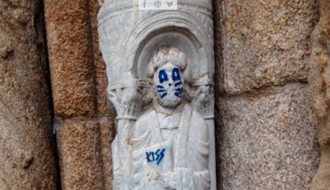 I media spagnoli hanno diffuso la notizia di atti vandalici che hanno colpito la facciata meridionale del transetto, costruita nei primi anni del 1100. Una statua della facciata raffigurante un apostolo è stata imbrattata con scritte e caricature: gli occhi del santo sono stati truccati a simulare il trucco da gatto del batterista dei Kiss. L’autore del danno adesso rischia una multa che potrebbe aggirarsi dai 6.000 ai 150.000 euro. Le indagini sono in corso.