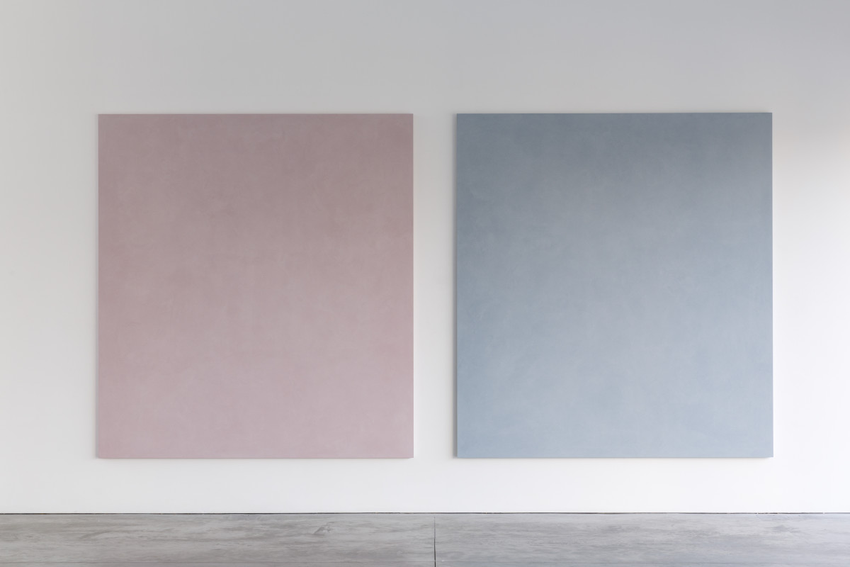 «Quando l’impasto è ancora fresco, ci metto il colore, e il colore viene assorbito, e quindi lo spessore diventa tutto colorato. Però il colore non è reale. Il colore viene restituito attraverso la quantità di bianco che ho messo nell’impasto. Quindi il rosso viene rosa, il bianco resta bianco, il nero viene grigio, anche il verde cade di tono. Dopo, quando l’impasto è asciutto, ci vado su con la carta abrasiva. Mi interessa moltissimo questo rapporto tattile con la superficie. La superficie non è sol più colore, ma è una cosa di polvere… questo colore che non esiste, che però viene fuori attraverso la polvere. Infatti, se tocchi il quadro, ti restano delle impronte sulla mano».