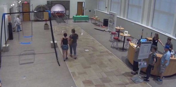 Arriva precisamente dal Susquehanna Art Museum di Harrisburg, in Pennsylvania, dove una donna la e sua figlia adolescente hanno distrutto un’installazione esposta al museo scambiandola per un’altalena, sulla quale presumibilmente la bambina intendeva salire. In realtà – come si vede dalle foto del “prima” e del “dopo” – Fair and Square, l’opera dell’artista Sean Matthews, prevedeva che le catene che sorreggevano i seggiolini di quella particolarissima altalena restassero tese in posizione orizzontale, tanto che le due malcapitate hanno dovuto faticare per spezzare le saldature e riportarle nella posizione consona. Resesi conto dell’accaduto, le due donne si sono allontanate dal museo, dopo aver guardato di sfuggita altre due installazioni…