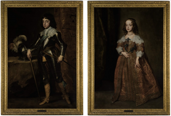 Concepiti ed eseguiti nell’estate del 1641, pochi mesi prima della morte dell’artista nel dicembre dello stesso anno, è possibile che siano i ritratti del principe e della principessa registrati tra i beni lasciati nello studio dell’artista a Blackfriars alla sua morte. Van Dyck era tra i migliori ritrattisti di bambini, un genere in cui eccelleva sin dai suoi primi anni a Genova. Nominato “Principal Painter in Ordinary to Their Majesties” nel 1632, van Dyck ha realizzato numerosi ritratti di Carlo I, sua moglie Henrietta Maria e i loro figli. Molti di questi ritratti si trovano ancora nella British Royal Collection.