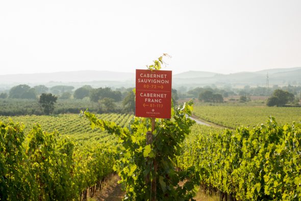 Le nuove etichette “interpretano” il nome e le caratteristiche del vino a cui sono associate. Così, ad esempio, Fonte dell’Anguillaia, Rosso Toscana Igt rievoca un corso d’acqua dal tratto sinuoso situato ai margini della tenuta; mentre Elegantia, Cabernet Maremma Toscana Doc ricorda una serie di scudi contrapposti attraverso un gioco di vuoti e pieni, bianchi e neri, spazi vuoti e righe ravvicinate, che sono il fil rouge di tutta la linea grafica.