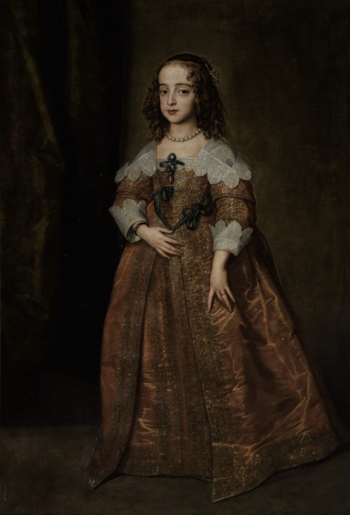 Van Dyck dipinse per la prima volta Mary nelle settimane immediatamente successive al suo arrivo a Londra nel 1632, quando la giovane principessa era stata presentata al pittore insieme ai suoi genitori, re Carlo I e la regina Henrietta Maria, e al fratello maggiore, il futuro re Carlo II. Il monumentale ritratto di gruppo, noto come “The Greate Peece”, dominava la King’s Long Gallery nel Palazzo di Whitehall (The Royal Collection). I primi ritratti dove la principessa Mary posa da sola e che la mostrano a figura intera in un abito blu, con le mani intrecciate all’altezza dello stomaco furono dipinti prima (o durante) l’anno 1637 e ora si trovano nel Museum of Fine Arts di Boston e all’Hampton Court Palace, in Inghilterra. Quattro anni dopo, la principessa aveva posato nuovamente per van Dyck insieme al giovane marito, il Principe William d’Orange, per il ritratto che si trova ora al Rijksmuseum di Amsterdam e per questo dipinto.