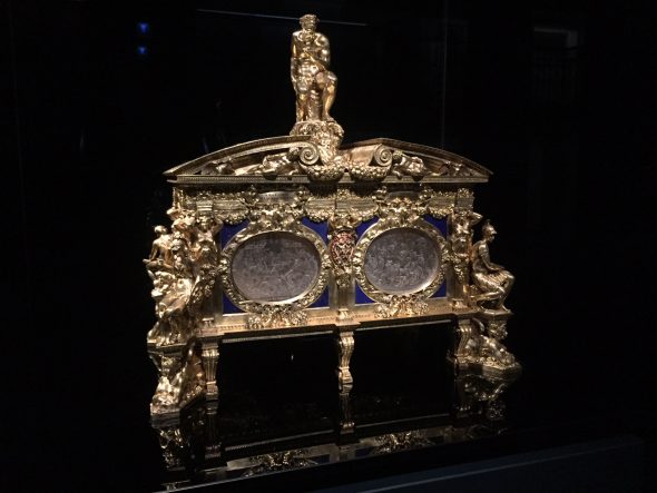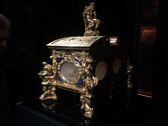 “Una cassetta tutta di cristalli, condotta con mirabil magisterio”. Così Giorgio Vasari nelle sue “Vite” parla della Cassetta Farnese, preziosissimo scrigno d’argento dorato, riccamente ornato di cesellature e piccoli bassorilievi con lapislazzuli e cristalli di rocca incisi, realizzato tra il 1543 e il 1561 dall’argentiere fiorentino Manno di Bastiano Sbarri, allievo di Benvenuto Cellini. Solitamente conservato nella Wunderkammer del Museo e Real Bosco di Capodimonte a Napoli, il capolavoro dell’oreficeria manieristica rinascimentale viene ora esposto per un mese a Milano nel caveau delle Gallerie d’Italia in Piazza Scala a conclusione di un delicato e complesso intervento di restauro che ha visto la Cassetta smontata in ogni singolo pezzo, svelando così particolari di grande rilievo finora sconosciuti.