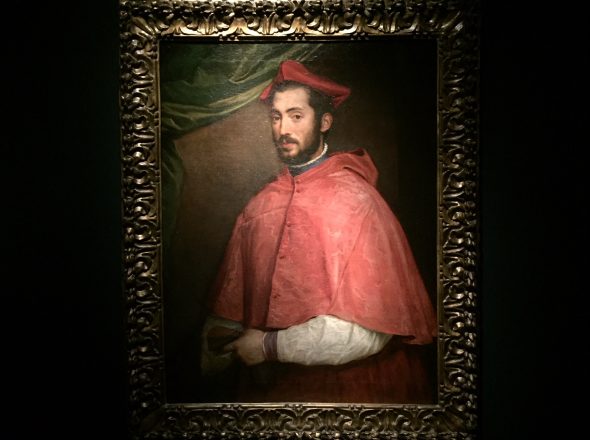 Commissionata del cardinale Alessandro Farnese, la Cassetta vide impegnati una serie di artisti attivi a Roma nel Cinquecento: per i disegni di alcune scene, tradotte in cristallo di rocca da Giovanni Bernardi da Castel Bolognese, fu chiamato Perin del Vaga, che negli stessi anni guidava l’équipe di decoratori attiva a Castel Sant’Angelo, uno dei più importanti cantieri romani del XVI secolo. Accanto al prezioso scrigno, nel caveau si trova un’altra opera proveniente dal Museo di Capodimonte: il Ritratto del cardinale Alessandro Farnese realizzato nel 1545 da Tiziano. Personaggio di spicco della Roma cinquecentesca, noto per le grandi capacità diplomatiche che contribuirono a consolidare il potere politico ed economico della famiglia, il cardinale è noto come uno dei più grandi collezionisti e mecenati del suo tempo. Il tutto resta visibile fino al 28 ottobre: noi vi anticipiamo le straordinarie immagini…