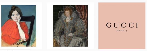 L’account-galleria di Gucci rende omaggio alle infinite varietà e sfumature del concetto di bellezza giocando con i capolavori dell’arte che, per l’occasione, diventano fonte d’ispirazione in fatto di moda e di beauty. Ogni immagine è accompagnata dal commento di scrittori e critici d’arte che contestualizzano l’opera e focalizzano l’attenzione sui particolari più “glamour”.