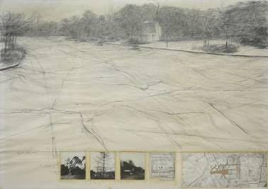 matita, carboncino, foto, mappa e nastro su carta 92×140 cm, firma e anno in basso a destra.