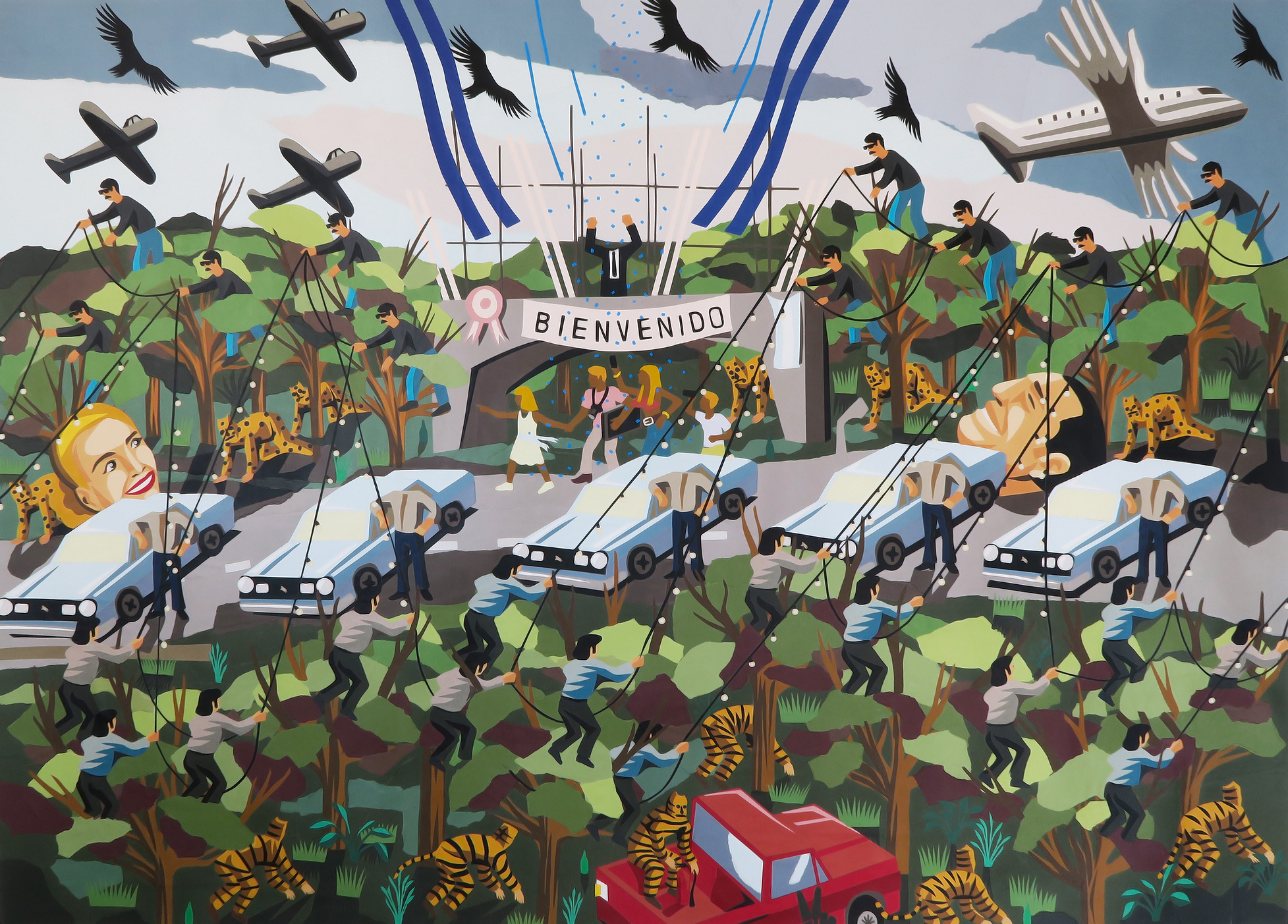 Studi eclettici gli hanno permesso di variare tecniche e materiali, passando dalla classica vernice al catrame, dalla benzina allo spray sino alla carta. L’uso di diversi mezzi artistici è funzionale a creare dinamismo all’interno delle sue opere, nelle quali ruotano temi come l’identità, la condizione umana, il conflitto e la dualità. Così Franco Fasoli porta avanti una riflessione sull’esistenza, in particolar modo in relazione al contesto sociopolitico argentino, servendosi di elementi derivanti dalla cultura latinoamericana come la tigre e le maschere o raffigurazioni di lotte in simmetrie compositive.