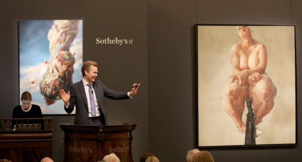 Top price per Adrian Ghenie con “Boogeyman” venduto a 4,851,900 sterline, seguito da Lucio Fontana con un 10 tagli su bianco aggiudicato a 2,890,000 £.