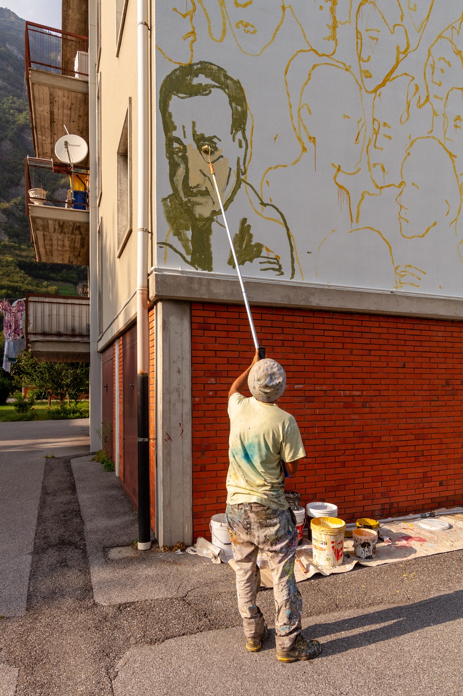Si tratta di ritratti di persone comuni, nei quali si possono intravedere lineamenti che appartengono ai residenti (un parallelismo con le espressioni più alte dell’arte in Valle Camonica: anche Romanino e Beniamino Simoni ritrassero gli abitanti del luogo nei propri capolavori), che si mescolano nella composizione a quelli di personaggi conosciuti. Ignazio Silone, il rivoluzionario marocchino Ben Barka, Carletto Mazzone e Pirandello, Didone – prima regina di Cartagine – e il patrono di Angone San Matteo, il calciatore Dybala e Madre Teresa: molti scelti e raffigurati dall’artista dopo una discussione e un confronto con la comunità, adulti e bambini senza distinzioni, dipinti fra radici che evocano appartenenza e connessioni, raccontano e rappresentano la multiculturalità e l’intergenerazionalità che contraddistinguono questo particolare quartiere.