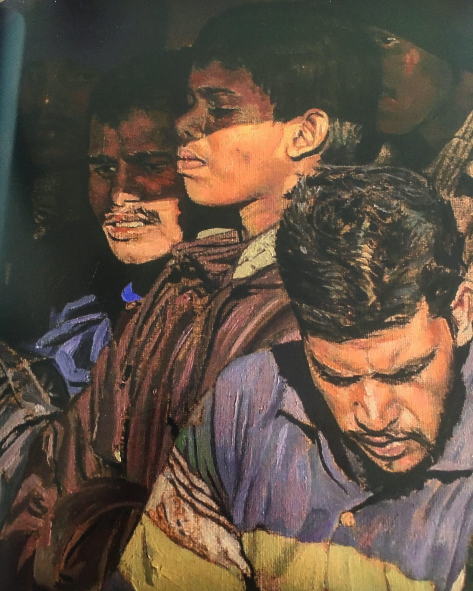Per l’occasione, la collezione ospita un progetto speciale dedicato a Giovanni Iudice, artista siciliano che sin da ragazzino affascina Iannaccone per il suo talento, la sua espressività artistica e il suo continuo volersi rapportare alla realtà che lo circonda. Dal suo legame verso gli umili, le periferie scordate e gli angoli di vita quotidiana (di cui nessuno si interroga più) nasce Asino 2018 d.C, trittico dalla forte valenza morale. I migranti, dai volti fortemente espressivi e intensi, guardano senza speranze dall’oblò il destino che li attende. La cornice della tavola, con i suoi materiali grezzi e corrosi dalla ruggine, rimanda alle imbarcazioni dei migranti.