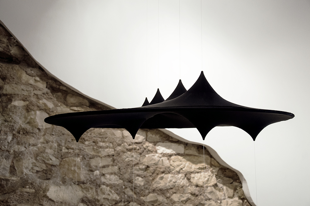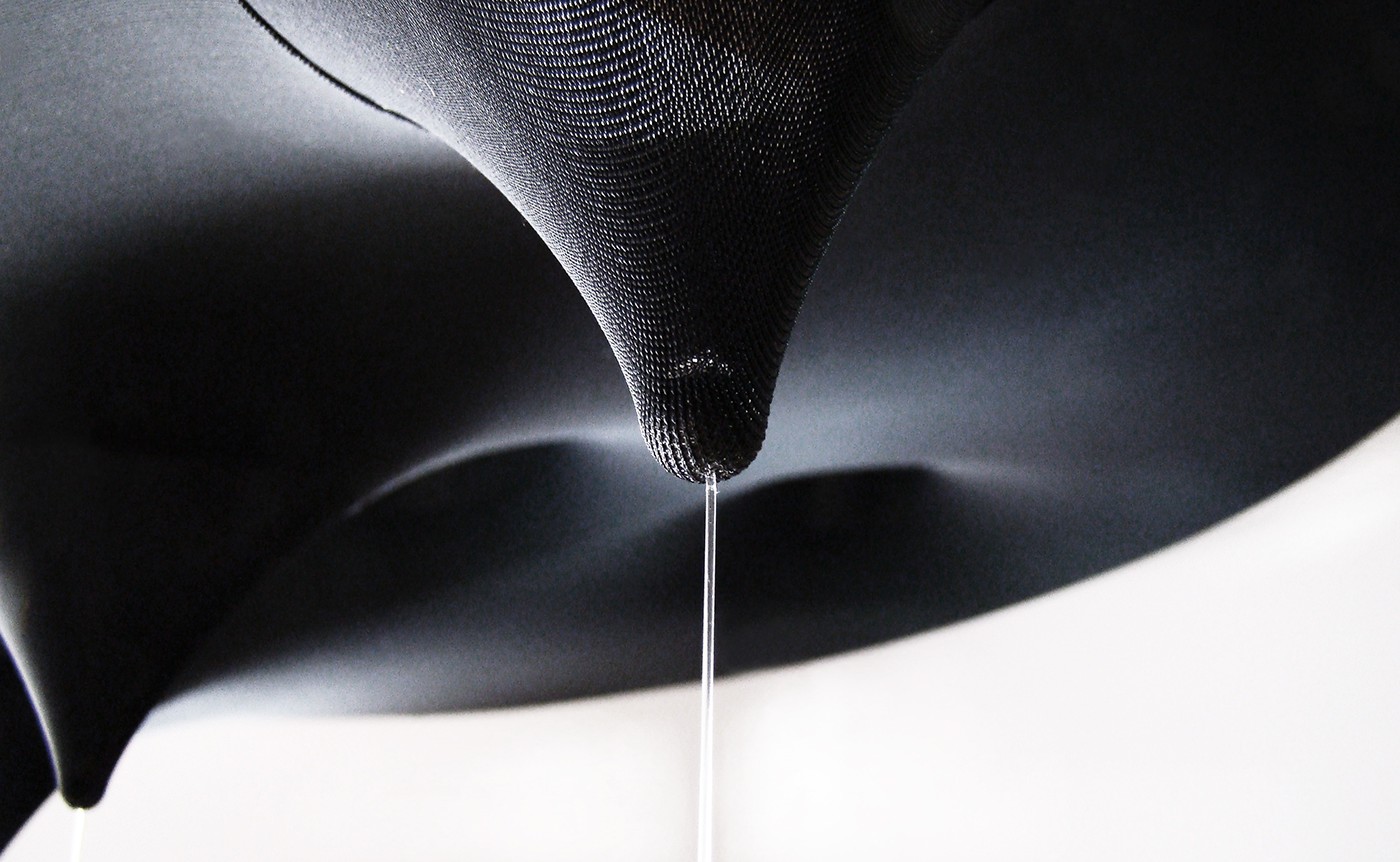 Il dialogo tra i lavori tridimensionali e quelli bidimensionali è sorto quasi spontaneamente. Abbiamo rintracciato in tutti i miei lavori la ricerca di connessioni e tensioni sia strutturali (nei lavori tridimensionali) che concettuali (nei lavori bidimensionali), come ad esempio il filo (nylon, cotone, silicone), elemento emblematico a tale proposito.