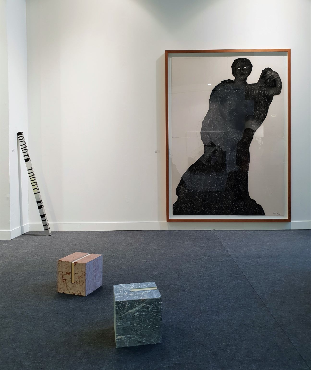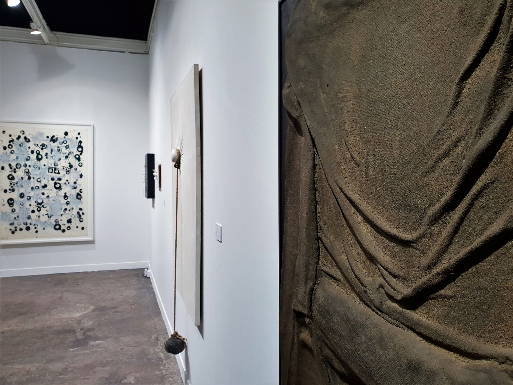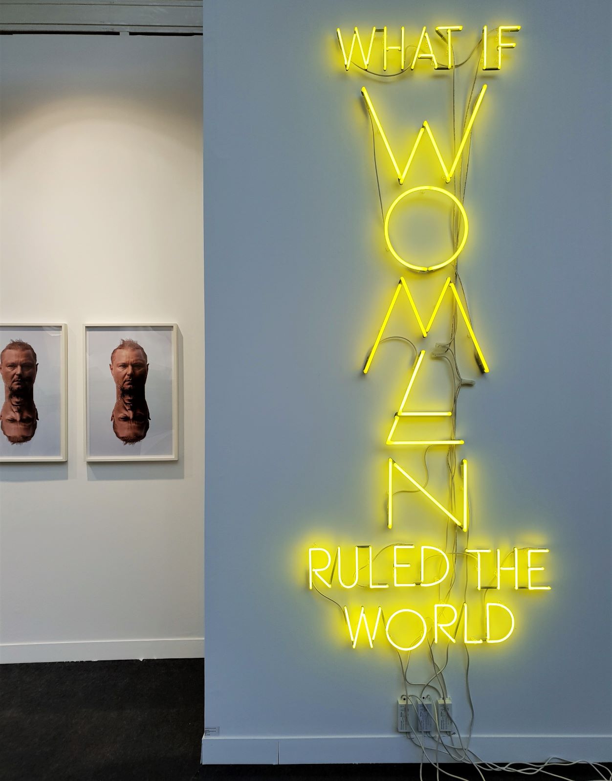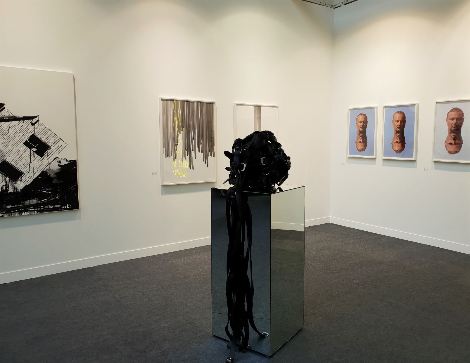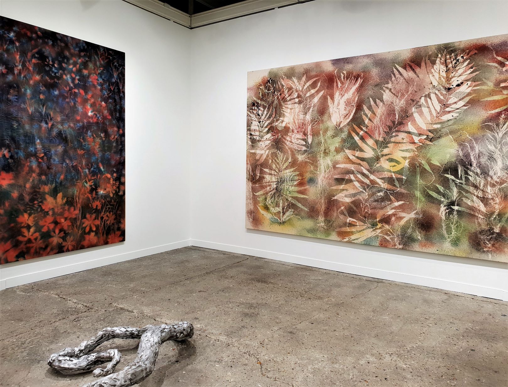 Passata Frieze, via con Fiac. Tutti al Grand Palais per la 45ª edizione della fiera d’arte moderna e contemporanea parigina, 18-21 ottobre 2018. Street painting analitico, a bande colorate, tappeto geometrico del duo Lang & Baumann per accedere (collegando il Petit e il Grand Palais sull’Avenue Churchill) all’ingresso della fiera. Una delle più riuscite installazioni delle “extra-sculture” fuori Fiac disseminate per la città, quasi sempre inutili e parecchio kitsch. Scheletro di vetro e ferro verdeggiante in questi giorni luminosissimo, vista azzurro terso, sulla scia dei 25 gradi della appena trascorsa manifestazione londinese. A Parigi, come a Londra 15 giorni fa, fa caldo. Niente vento, niente pioggia. Nessun giubbotto, nessun cappotto. Finite le giornate tra gli stand, tutti ai sempre molto radical (quanto efficaci) furgoncini street food che costeggiano il Palais verso la Senna. La fiera, molto simile alle passate edizioni (sia come artisti che come stand), si conferma anche quest’anno più curata, ordinata ed elegante della cugina d’oltremanica. Migliore. Nessun colpo di teatro (a parte il monumentale Ingres wood di Katharina Grosse piombato sotto la calotta metallica del Grand Palais da Gagosian, e lo scenografico e scintillante rosso “fuoco” di Gmurzynska -“On fire”, curato dal designer Alexandre de Betak- per scaldare l’algidità di casa) e vendite “ottime” subito dalla prima tornata (17 ottobre) dedicata a collezionisti e vip vari (si veda il secondo giorno, 18 ottobre, come già erano “trasformati” gli stand, sostituendo le opere vendute alle pareti). Progetti allestitivi in generale assai curati e gallerie italiane sugli scudi. Le 13 (su 195, da 27 paesi) realtà nostrane sono sicuramente tra i punti più positivi della fiera.