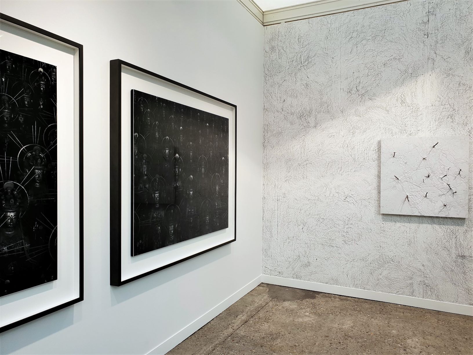 Un nome, una garanzia. Il Tiziano di Robert Longo, passato ai raggi x al carboncino, accoglie il visitatore specchiandosi (oltre che nello specchio, è la Venere del 1555 del maestro cadorino) nella finzione filmica patinata di Cindy Sherman. All’interno, due Nudi (Giallo e Blu) digital in C-print di Sara Van der Beck. Graziose silhouette, leggere e “scattanti”, che si bilanciano con la gravità di Pere e Valigie in cemento e mattoni di Judith Hopf. Equilibrio perfetto.