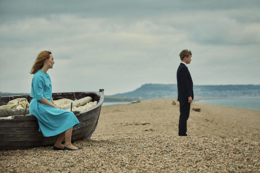Una lingua di ciottoli chiari fa da frangente alle onde placide ma continue che arrivano sulla spiaggia di Chesil Beach, nella contea del Dorset, a sud dell’Inghilterra. È il 1962 e una giovane coppia discute in prossimità di una barchetta, entrambi sono vestiti in maniera elegante: lui in abito scuro, lei con una blusa ceruleo che richiama il colore dei suoi occhi e contrasta con il rosso dei capelli, acconciati in maniera semplice.
