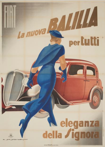 La stima più alta è invece per il prezioso manifesto Fiat la nuova Balilla. Eleganza della signora di Marcello Dudovich, un affisso litografico originale del 1934 stimato 7.000-14.000 euro.