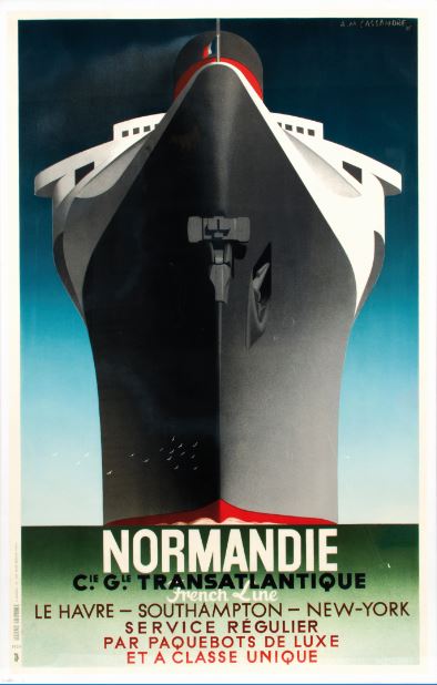 Cassandre ha volutamente creato un effetto esasperato nel porre i minuscoli gabbiani in primo piano e l’enorme prua della nave allo scopo di suggestionare chi guarda con l’incombenza del gigantesco transatlantico che, com’è noto, fu tra i più veloci e lussuosi che abbiano mai solcato le rotte internazionali. Questo lotto partirà da una stima iniziale di 6.000-9.000 euro.